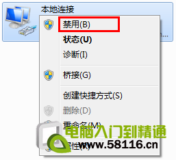 如果电脑已经是自动获取IP地址,如果获取到的参数不正确,请把电脑对应的 本地连接 或 无线连接 禁用后启用。 (电脑入门到精通网 www.58116.cn)