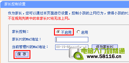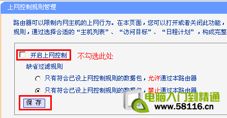 路由器的 家长控制、上网控制(部分路由器为 防火墙设置)功能可以限制内网电脑的上网权限,请根据实际需求设置该功能,非必要情况下,可不启用该功能。设置方法如下: (电脑入门到精通网 www.58116.cn)
