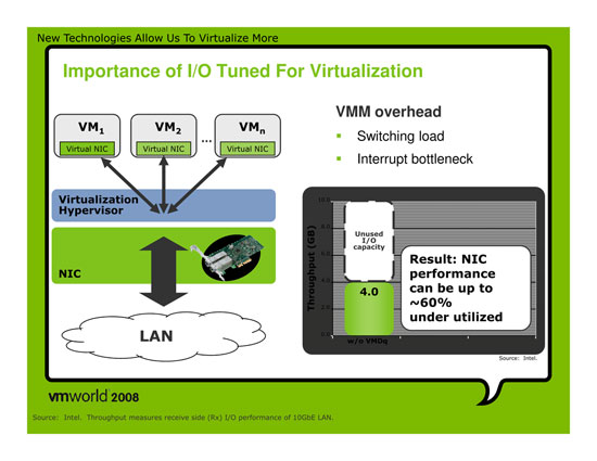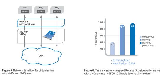 VMware的NetQueue同样也利用了VMDq技术,实现了两倍以上的吞吐量提升