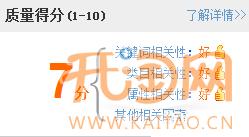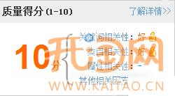 因此,质量得分是关键词的搜索匹配相关度的综合指数,当买家搜索关键词时,匹配相关度越高的宝贝质量得分越高,反之则越低。在关键词出价相同的情况下,质量得分越高,排名越靠前。推广展示费用越低。