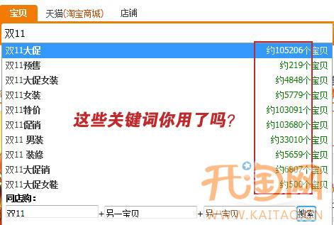 双十一,身为一个淘宝人的你,完全没有理由不知道这个热得不能再热的词眼。打开电脑上的日历,这个词眼已经可以说是走到眼前了。作为一个淘宝卖家,或许你会抛着质疑地问:那是天猫的事情,我们一点腥味都沾不到,我们能有啥好大展拳脚的?如果你这么问,那么你就打错特错了。下面,开淘网的小编就教广大的淘宝卖家们搭上双十一的顺风车。