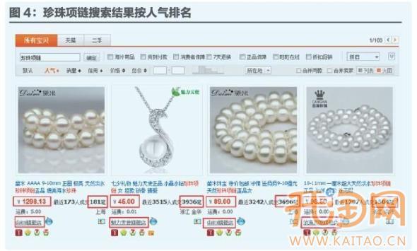 例如查看“珍珠项链”词条下大部分在售宝贝的类型,然后选择同类型宝贝做推广;同时对比自己店铺商品跟竞品的价格,用价格战去卡位。如对方售价比自己商品便宜,那么卖家就要考虑能否在保证盈利的前提下去降价。
